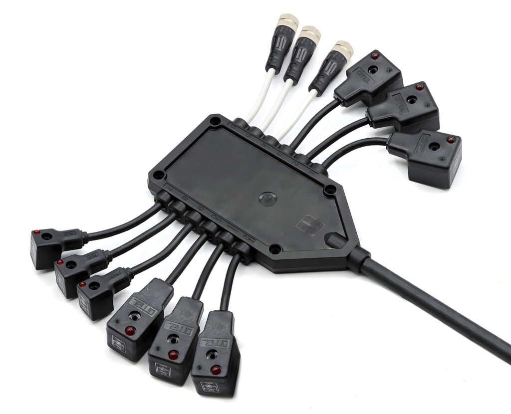 High performance electrical splitter connectors are also available as a 12 way connection box. Custom or bespoke connection boxes can be made on request.